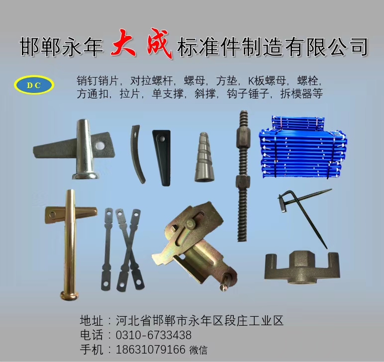 點擊數(shù):48152019-07-08 15:54:18 來源: 鋁模板銷釘_鋁模板配件_建筑扣件螺栓_扣件螺絲生產(chǎn)廠家-永年區(qū)大成標(biāo)準(zhǔn)件制造有限公司